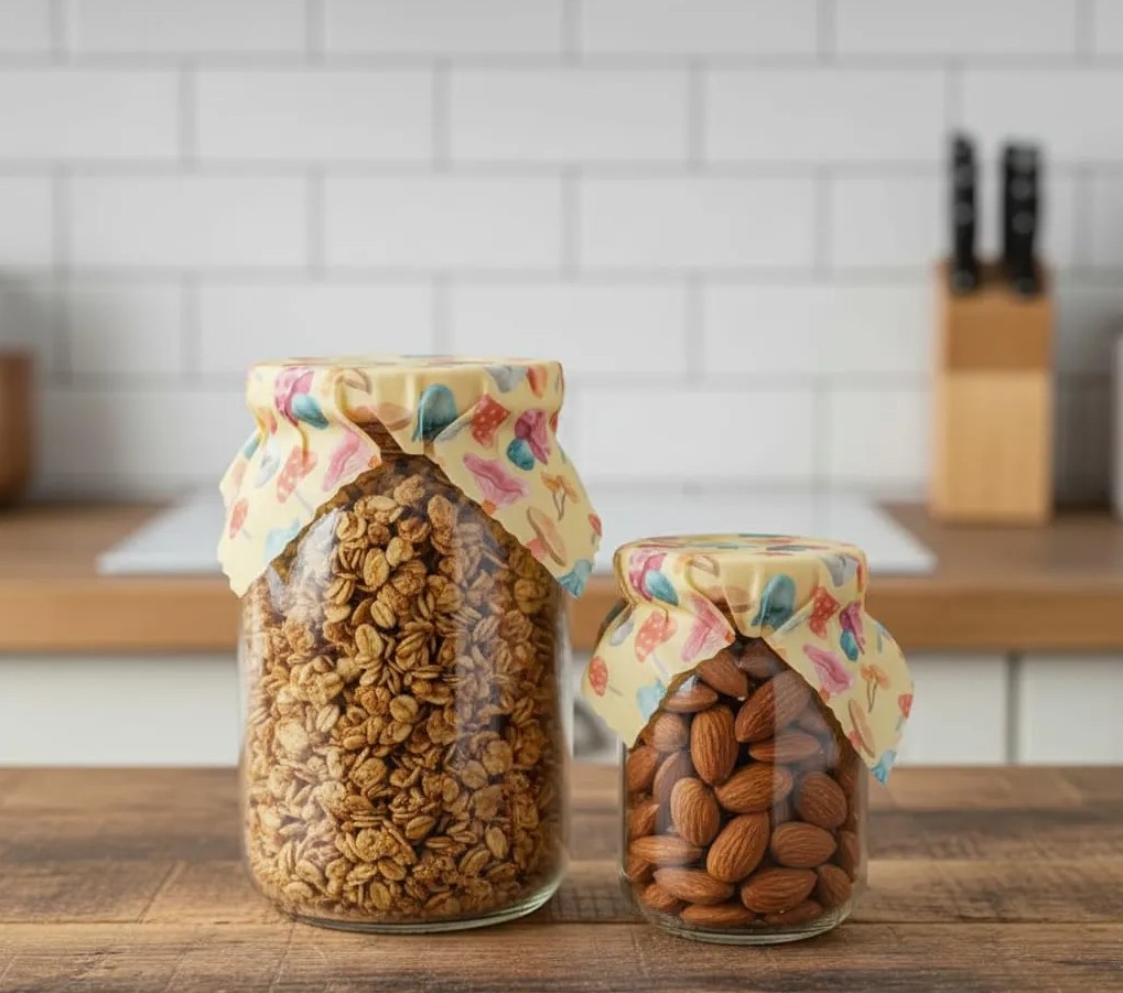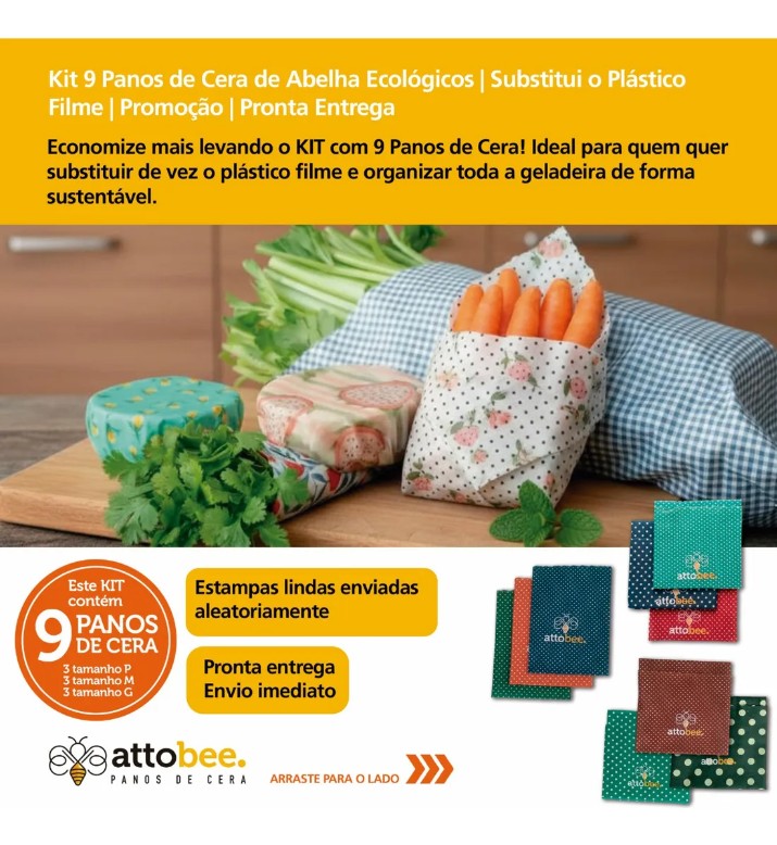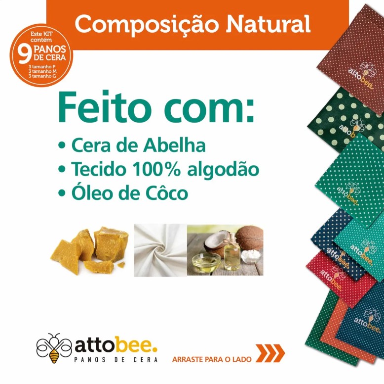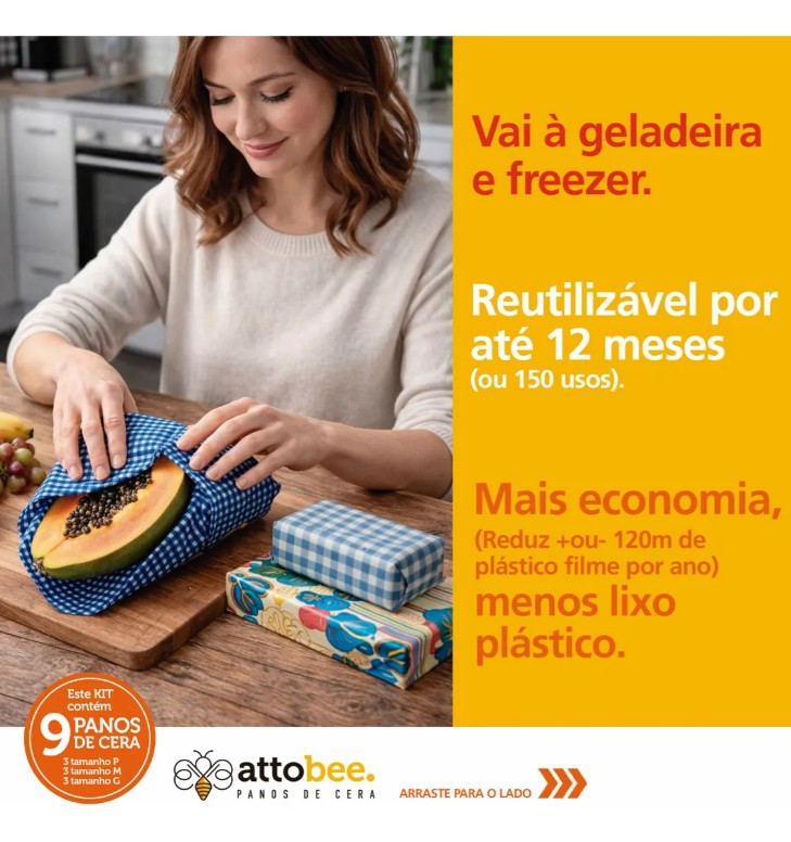 Por ser feito de cera de abelha, tecido 100% algodão, resina vegetal e óleo de coco, ajuda na conservação e frescor dos alimentos por mais tempo, evitando desperdícios e geração de lixo plástico.