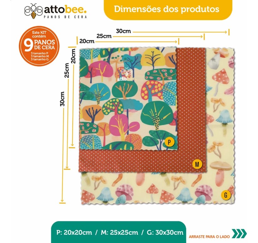Conteúdo: 9 Panos de Cera Ecológicos.